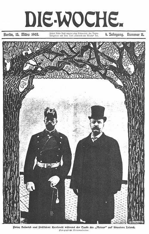 "Zahlreiche bekannte Gestalten bieten sich da den Augen der überraschten Beschauer: Prinz Heinrich, die Admirale Tirpitz, Seckendorf und Eisendecher, die Kapitäne zur See v. Müller und v. Grumme, der Botschafter v. Holleben und der deutsche Militärattaché in Gardekürassier-Uniform mit dem Adlerhelm, General von Plessen, Offiziere der amerikanischen Armee und Marine, unter letzteren besonders ins Auge fallend, "Fighting Bob", der Kontreadmiral Robley D. Evans, mit dem markanten, an unseren Moltke erinnernden Gesichtszügen, einer der volkstümlichsten Seeleute der Welt, den Prinz Heinrich sowohl wie auch Kaiser Wilhelm II. besonders hochschätzen."